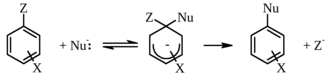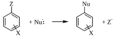 Реакции нуклеофильного ароматического замещения без учета их дательного механизма можно описать следующей общей схемой:
