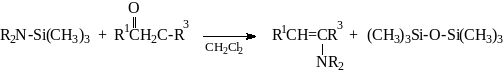 В усовершенствованном методе получения енаминов исходят из триметилсилильного производного вторичного амина. Атом кремния обладает значительно большим сродством к кислороду, чем к азоту, что позволяет в мягких условиях поучать енамины из (СН3)3SiNR2 и кетонов.