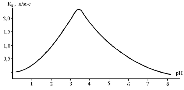 Рис. 16.3. Зависимость скорости образования оксима ацетона от рН