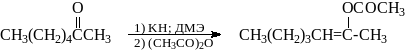 Старые методы получения енолацетатов нагреванием кетонов с уксусным ангидридом или изопропенилацетатом в толуоле в присутствии п-толуолсульфокислоты или хлорной кислоты для несимметричных кетонов, приводят, естественно, к равновесной смеси двух енолацетатов. Аналогично, силилирование несимметричных кетонов триметилхлорсиланом в присутствии триэтиламина в ДМФ также дает смесь двух силиловых эфиров енолов. Индивидуальные енолацетаты и силиловые эфиры енолов могут быть получены только в условиях кинетического контроля из литиевых енолятов, уксусного ангидрида или триалкилхлорсилана при -78 °С или более низкой температуре.