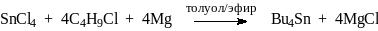 Чтобы в стой реакции получить высокие выходы R4Sn , помимо избытка реагента используют и длительное время нагревания, иногда в высококипящих растворителях. В промышленности для получения тетрабутилолова используют следующие варианты этого метода: