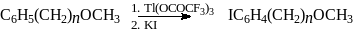 Бензойная (п =0) и фенилуксусная (п =2) кислоты после обработки KI дают почти исключительно орто-иодпроизводные, поскольку образуются пяти- или шестичленные хелатные циклы; фенилпропионовая кислота дает лишь 29% орто-изомера, т.к. хелат является семичленным, т.е. менее стабильным, чем 5- или 6-членные циклы.