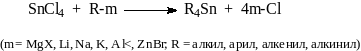 Для получения тетраалкильных и тетраарильных производных олова наиболее часто используют реакцию хлорида олова (IV) с избытком металлоорганический соединений - доноров карбанионов.
