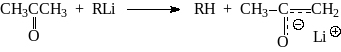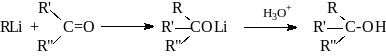 Ацилирование литийорганических соединений осложняется присоединением второго моля RLi к образовавшемуся кетону (в принципе, это хороший метод получения третичных спиртов типа R2R’COH). Чтобы избежать присоединения второго моля реагента, имеется несколько путей. Например, можно ввести в реакцию с RLi не хлорангидрид R’COCl, а соответствующий кaрбоксилат лития R’COO-Li+. При этом в осадок выпадает сoль ХШ, обработка которой водной кислотой дает кетон: