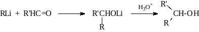 Присоединение по связям С=O и C=S. В реакциях с альдегидами и кетонами образуются первичные, вторичные или третичные спирты. Для получения первичных спиртов берут формальдегид, из других альдегидов получаются вторичные, а из кетонов - третичные спирты.