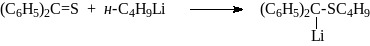 Тиокарбонильные соединения (тиокетоны, тиокарбонаты, тиоамиды) в противоположность аналогичной реакции карбонильных соединений, реагируют с литийалкилами не по углероду, а по атому серы: