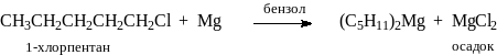 При проведении реакции алкилхлоридов с магнием в бензоле хлорид магния выпадает в осадок самопроизвольно, например: