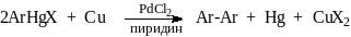 При избытке меди в водном аммиаке образуются симметричные диарильные соединения: