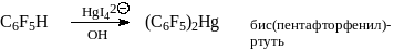 Аналогично получают ртутные производные других относительно сильных СН-кислот, например, алкинов или полигалогенбензолов: