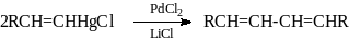 Эти реакции, по-видимому, протекают с промежуточным образованием палладийорганических соединений (гл.21). Применение таких реакций ограничено арильными соединениями ртути, а также алкильными соединениями, не имеющими -водородного атома.