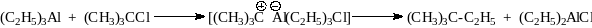 Активность алкилгалогенидов возрастает в ряду: первичные < вторичные < третичные. Этот ряд соответствует возрастанию устойчивости карбокатионов, и поэтому был сделан вывод, что реакция включает стадию образования ионной пары карбокатиона и триалкилгалогеналюмината:
