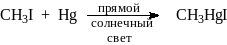 Связь углерод-ртуть является слабой. Например, энергия диссоциации (СН3)2Hg à CH3. + CH3Hg. составляет всего 51 ккал/моль. Поэтому большинство диалкилртутных соединений легко подвергаются термическим и фотохимическим гомолитическим реакциям, которые наблюдались в качестве побочных процессов при электрофильном замещении.