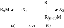 Таким образом, строение комплекса металлоорганического соединения с галогенами (ХVI) можно представить двумя формулами: с кислотно-основным взаимодействием (ХVIIa) или с переносом заряда (ХXIб).