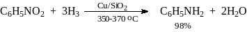 Наиболее важной реакцией ароматических нитросоединений является восстановление до первичных аминов. В промышленных условиях применяется каталитическое гидрирование. В качестве катализатора используют медь на силикагеле в качестве носителя. Катализатор готовят нанесением карбоната меди из суспензии в растворе силиката натрия и последующим восстановлением водородом при нагревании. Выход анилина над этим катализатором составляет 98%.