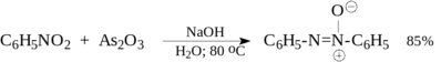 В лабораторных условиях азоксибензол с хорошим выходом получается при восстановлении нитросоединений боргидридом натрия в ДМСО или старым способом при использовании в качестве восстановителя Аs2O3 или глюкозы: