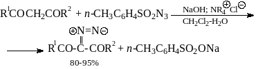 Введение диазогруппы в 1,3-дикетоны и 1,3-кетоэфиры осуществляется с помощью тозилазида