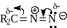 . Отрицательный заряд в диазоалкане распределен между концевым атомом азота и углеродом в результате мезомерного эффекта