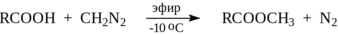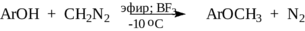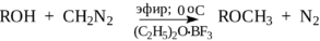Диазометан и другие диазоалканы количественно реагируют с гидроксильной группой карбоновых кислот, фенолов и енолов, а при катализе эфиратом трехфтористого бора и со спиртами в эфирном растворе при -10-20°С.