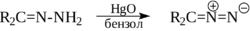 Диазосоединения могут быть получены также окислением соответствующих гидразонов желтой окисью ртути в эфире или бензоле по Т.Курциусу.