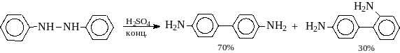 При более низкой температуре в совершенно безводной среде образуется и 2,2 -диаминобифенил (о-бензидин). Если пара-положение в одном из бензольных ядер гидразобензола занято каким-нибудь заместителем, продуктом перегруппировки оказывается производное дифениламина (так называемая семидиновая перегруппировка).
