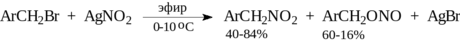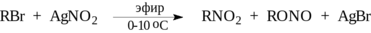 Наиболее общим методом получения нитроалканов до сих пор остается реакция алкилирования нитрит-иона, открытая В.Мейером еще в 1872 году. В классическом методе В.Мейера нитрит серебра взаимодействует с первичными или вторичными алкилбромидами или алкилиодидами в эфире, петролейном эфире или без растворителя при 0°-20°С, с образованием смеси нитроалкана и алкилнитрита.