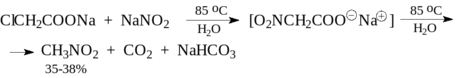 Более ста лет назад Г.Кольбе описал метод получения нитрометана при взаимодействии хлорацетата натрия и нитрита натрия в водном растворе при 80°-85°С: