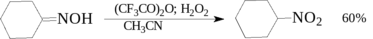 Другой общий метод синтеза нитроалканов состоит в окислении оксимов кетонов с помощьютрифторперуксусной кислоты в ацетонитриле: