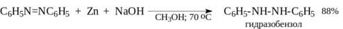 Азоксибензол при действии цинка в спиртовом растворе щелочи восстанавливается сначала до азобензола, а при действии избытка цинка далее до гидразобензола.