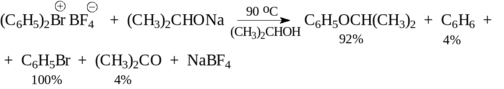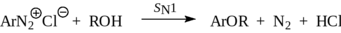 При замене воды на спирт в качестве нуклеофильного агента в реакции с солями арендиазония образуется некоторое количество арилаликиловых эфиров.