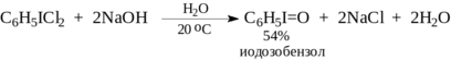При щелочном гидролизе иодозобензолдихлорида получается иодозобензол (иодозилбензол).