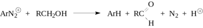 Восстановление диазосоединений до углеводородов было открыто более ста лет назад П.Гриссом, который впервые получил соли арендиазония. Для замещения диазогруппы на водород с помощью спиртов доказан цепной радикальный механизм.