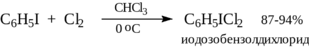 Для ароматических соединений иода известны соединения трехвалентного и пятивалентного иода. Первое органическое соединение поливалентного иода - иодозобензолдихлорид (дихлориодбензол) был получен К.Вильгеродтом в 1886 году при взаимодействии иодбензола с хлором в хлороформе.