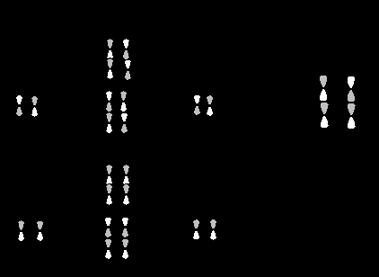 Реакция Дильса-Альдера. Орбитальный базис для реакции цикло-присоединения бутадиена к этилену для случая, когда реагенты сближаются друг с другом в двух параллельных плоскостях, можно представить следующим образом: