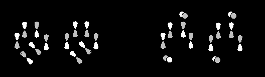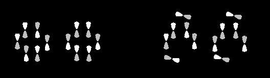 Если орбиталь , образованная из двух гибридных sp3, sp2 или sр-АО, взаимодействует двумя внутренними долями или двумя внешними долями, то такое взаимодействие называют супраповерхностным. Если -орбиталь взаимодействует одной внутренней и одной внешней долей, то такое взаимодействие называют антараповерхпостным.