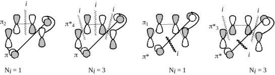 Если в результате реакции из нескольких исходных молекул образуется одна молекула продукта, или из одной молекулы реагента образуются несколько молекул продукта, то орбитали "реагента" в первом случае или "продукта" во втором случае являются групповыми орбитальными ансамблями.