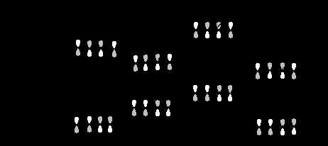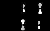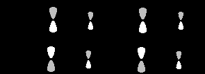Преимущество одной ориентации над другой вытекает из формы граничных орбиталей, которая отражается в величине орбитальных коэффициентов на взаимодействующих атомах. Рассмотрим четыре возможных варианта реакции Дильса-Альдера.