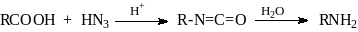 Спирты и алкены с NH3 образуют алкилазиды, которые перегруппировываются в имины (см. раздел 26.5.2). Механизм перегруппировки Шмидта в случае карбоновых кислот в целом аналогичен механизму перегруппировки Курциуса, однако в данном случае перегруппировывается протонированный азид: