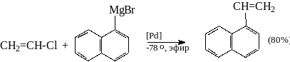 где R - органические группы, спаривающиеся в результате реакции. Особенно часто в синтезе используют взаимодействие металлоорганических соединений RM с органическими галогенпроизводными RX, катализируемое растворимыми соединениями переходных металлов, взятых в каталитическом количестве