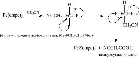 Действительно, комплекс нульвалентного железа с фосфиновыми лигандами реагирует с ацетонитрилом, давая комплекс Fе(II), который реагирует с СO2 с образованием свободной циануксусной кислоты.