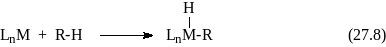 Образующиеся в результате такой реакции алкилгидридные комплексы металлов широко известны; они, например, являются интермедиатами в каталитических циклах гидрирования алкенов (раздел 27.9.1). Однако образованию алкилгидридных комплексов из алканов сильно мешают неблагоприятные термодинамические факторы, действующие в реакции 27.8).