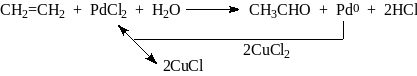 Металлокомплексный катализ соединениями Pd (II) в присутствии солей меди используется для одностадийного окисления алкенов до кетонов (этилен, естественно, окисляется до ацетальдегида).