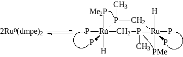 Чтобы понизить свободную энергию реакции (27.8) и сделать термодинамическую ситуацию более благоприятной, можно идти разными путями. Например, можно взять субстрат, который содержит относительно малопрочную связь С-Н (так называемые активированные алканы). Примером такого субстрата является молекула ацетонитрила [D(H-CH2CN) = 74 ккaл/моль). Можно ожидать, что если металл находится в низкой степени окисления и к тому же окружен хорошими электронодонорными лигандами, то связь LnM-CH2CN будет относительно прочной, т.к. избыток электронной плотности будет переходить с металла на электроноакцепторную группу CN. Таким образом, уменьшение прочности связи С-Н и увеличение прочности связи М-С должно способствовать протеканию реакции (27.8) слева направо.