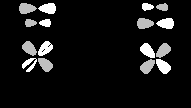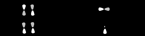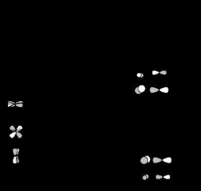 По аналогии с аллильной системой орбитали x и x’ имеют следующую форму: