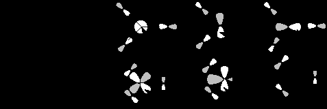 Три пустые орбитали в XXIII соответствуют трем локализованным связям ML, бывшим в октаэдре. Они могут быть использованы при решении конформационных вопросов. Чтобы получить делокализованные (симметризованные) орбитали фрагмента ML3, необходимо взять линейные комбинации и :