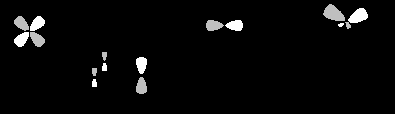 На этих диаграммах дано упрощенное обозначение орбиталей Ср-, в котором подчеркнуты узловые свойства орбиталей и их фазовое взаимоотношение с атомом металла, например: