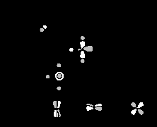 Как видно из табл. 27.2, при удалении лиганда сильно меняется лишь энергия уровня9. Орбиталь 9’имеет гибридную форму и ее наибольшая доля направлена в сторону недостающего лиганда. Уровень ___ также немного понижается из-за того, что при удалении лиганда исчезает одно из четырех антисвязывающих взаимодействий металл-лиганд. Остальные уровни при переходе от МL4 к ML3 практически не изменяются.