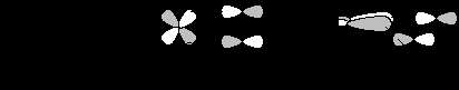 Такое связывание дает гораздо меньший выигрыш энергии, чем связывание по типу ХXIX, по двум причинам. Во-первых, пространственное перекрывание в XXIX больше, чем в XXX из-за того. что в XXX d-орибиталь не гибридизована, а в XXIX гибридизована так, что она вытянута в сторону алкенового лиганда. Во-вторых, dyz -орбиталь (№ 6, табл. 27.2) лежит гораздо ниже ВЗМО (ML4) (№ 8), и поэтому энергия возмущения dyz-* будет мала. Экспериментальные данные свидетельствуют, что для всех d8-комплексов МL4(алкен) конформации XXVIII с экваториальным расположением алкена стабильнее аксиальной конформации ХХVII. По данным ЯМР барьер вращения вокруг связи Fe-алкен в комплексах (СО)4Fе(алкен) составляет 10-15 ккал/моль.