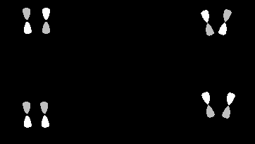 Металлациклопропаны можно представить двумя локализованными -связями металл-углерод. Эти связи можно симметризовать (гл.2.), взяв комбинации в фазе и противофазе. Ясно, что полученные таким путем делокализованные орбитали ХХХIV и ХХV эквивалентны орбиталям ХХVI и XXVII, т.е. модели -комплекса и металлациклопропана взаимозаменяемы.