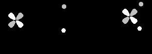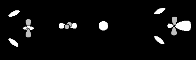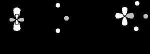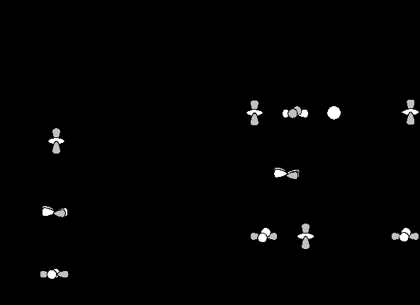 По форме гибридных орбиталей, на которых находятся один, два или три неспаренных электрона, фрагмент L5M похож на фрагмент L3M (плоский), фрагмент L4M - на L2M , а L3M (пирамидальный) - на LM. Эти пары фрагментов называют изолобальными (от английского lobe - доля, лопасть). Более того, фрагменты L5M и L3M (плоский) изолобальны, например, пирамидальному метильному радикалу, и изолобальны триплетному карбену, а L3M (пирамидальный) и LM изолобальны квадруплетному метану. Аналогия изолобальности обозначается обоюдоострой стрелкой с петлей посредине в форме «слезы».