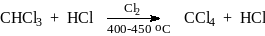 Это типичный радикальный цепной процесс, механизм которого описан в главе 4. При хлорировании метана образуется смесь всех четырех продуктов замещения водорода на хлор. Соотношение продуктов зависит от молярного соотношения метана и хлора, для более глубокого хлорирования СН3Сl, СН2Сl2 и СНСl3 можно рециркулировать. Большим недостатком прямого хлорирования метана является образование НСl в качестве побочного продукта, который в этих условиях невозможно рационально утилизировать, т.к. продукты хлорирования промывают водой для удаления НСl и далее разделяют перегонкой. Поэтому существуют альтернативные методы получения хлорзамещенных метанов. Хлористый метил получают при взаимодействии метанола с НСl (см. выше),четыреххлористый углерод образуется при обработке сероуглерода хлором (см. ниже).